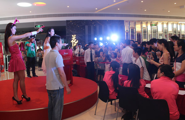 活动期间,不仅有好吃的好看的,更有丰富趣味活动,“福利整点接之价格竞猜”活动博得众多关注,现场观众只要在主持人的提示下猜中商品价格,就能免费获得海雅缤纷城提供的丰厚礼品,包含著名珠宝首饰、名品包包、配饰、真丝床品、健身椅子等百余款国际名品,极具诱惑力的礼品不断挑起顾客的激情参与。极具戏剧性的是,活动最后一款竞猜商品——高级婚纱,最终让一对情侣猜中价格收入囊中,得到现场顾客的掌声与祝福,而竞猜活动也在洋溢着幸福的空气中落下了帷幕。