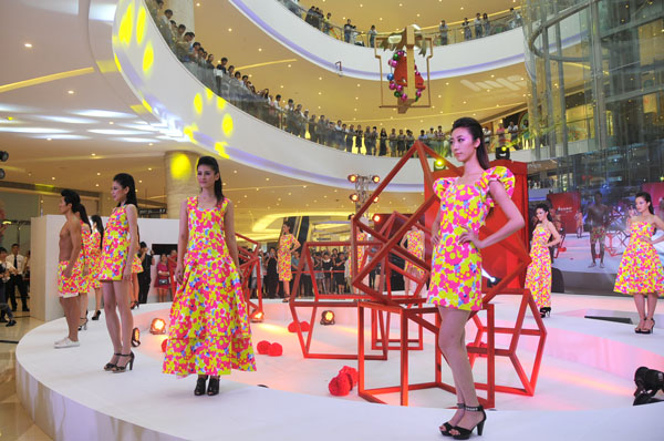 2013时尚发布会无疑最受欢迎,缤纷城中庭,每日两档时装走秀在这里准时上演。高挑美丽的模特,演绎服饰珠宝的时尚魅力,引得顾客们纷纷驻足。调皮逗趣的小丑、活泼可爱的卡通公仔,穿梭在缤纷城的各个楼层,让缤纷城的每一个角落都充满了欢声笑声。