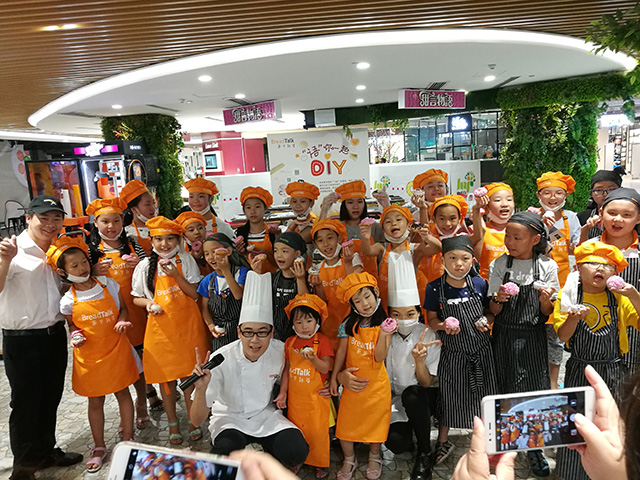 面包DIY已经不是第一次在海雅缤纷广场举办,孩子们穿上围裙,戴上帽子,套上手套,一张张兴致勃勃的笑脸,颇有小小面包师的架势。稚嫩的小手,认真地跟着老师擀面,搓型,在自己的面包上十分投入。伴随着孩子们的欢呼,一个个香甜可口的面包也热腾腾出炉了。品尝着自己的成果,孩子们的满足与喜悦溢于言表!