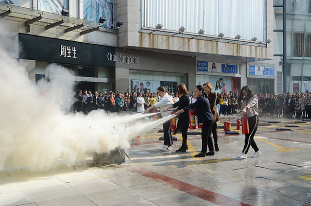 消防队长还向大家演示了干粉灭火器的使用方法,随后由公司各部门人员实战演练如何灭火。在指挥下,各部门人员现场学习并实践了灭火器的使用,大家分批依次端起灭火器,拔去消栓,对准火源根部按下喷嘴按钮。演习过程场面逼真,扣人心弦。