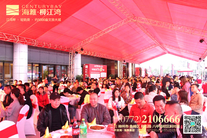 4月13日晚上,柳州海雅·柳江湾礼敬新老业主答谢晚宴浓情盛启,柳州分公司董事长詹波、项目总经理于洪水、副总经理冯永华等领导出席了本次活动。夜幕降临,华灯初起,亲人携旁,共赴一场家宴,几百位新老业主齐聚营销中心共襄盛举。